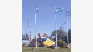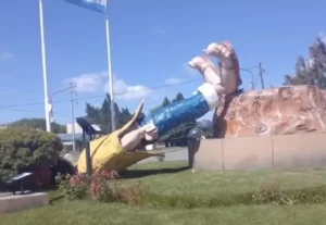 La estatua cayó debido a los fuertes vientos que se registraron en varias localidades de Chubut y Santa Cruz, afectadas por un alerta.